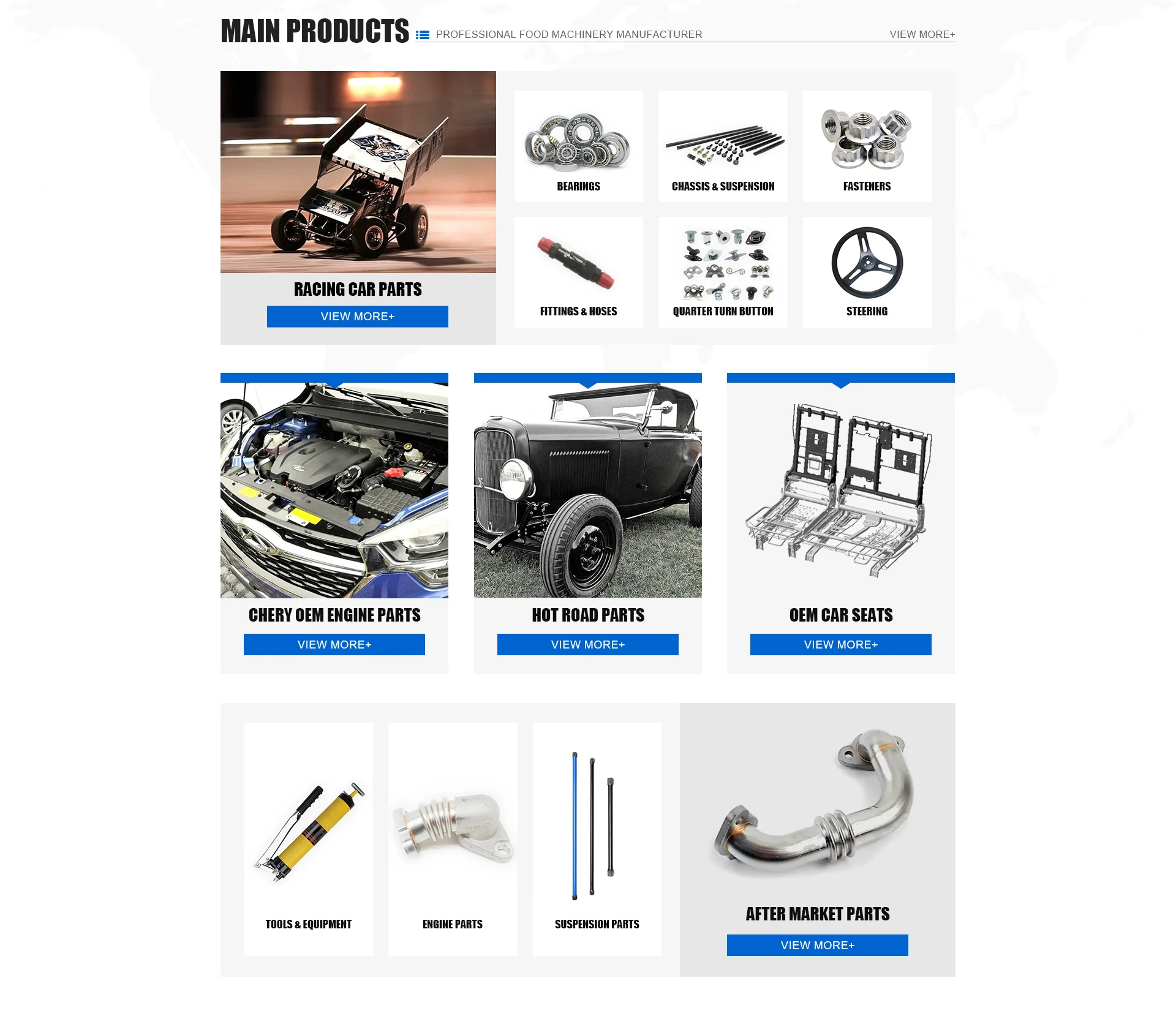 मुख्य उत्पादों: ब्रेक, चेसिस और निलंबन, कार निकास और हेडर, रखरखाव उपकरण, सीएनसी मशीनिंग पार्ट्स